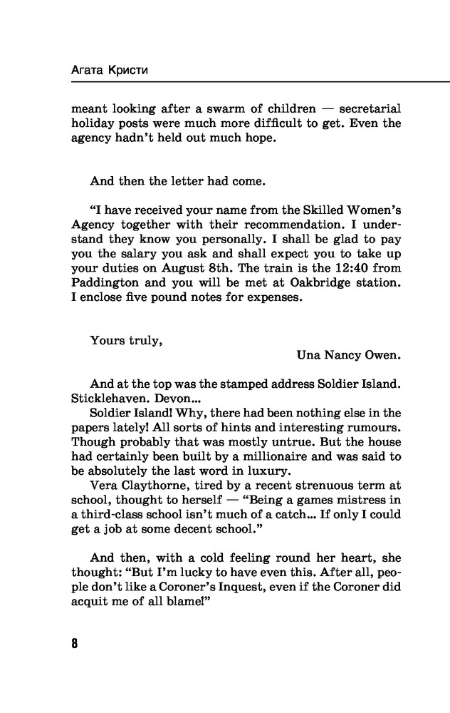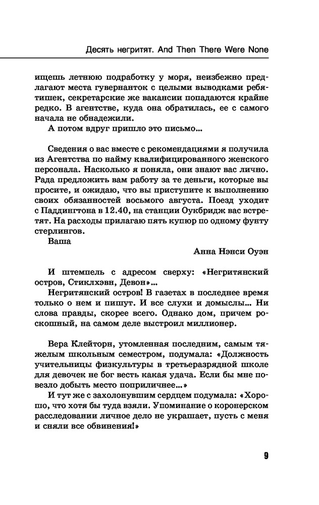 Я купила это издание чтобы подарить подруге на день рождения. А изначально я уже прочитала эту книгу Агаты. "Десять негритят",ведь уже звучит интересно,правда? Прежде чем прочитать эту книгу я столько раз перечитывала Отзывы разных людей. "Покупать или не покупать?" Вот такие у меня были мысли. Но как видите я её уже прочитала и могу с уверенностью вам сказать что вы тоже Должны прочитать! Сам сюжет книги вас никогда не заставит скучать,каждая страница пропитана чем-то загадочным и интересным.Из за этого хочется дальше листать и листать страницы. Дочитав и узнав кто оказался Убийцей,я на пару времени посчитала себя глупой,ведь было ТАК очевидно кто Убийца.. Но не стала себя винить себя в этом,и вместе этого начела удивляться гениальности Агаты и её книг.