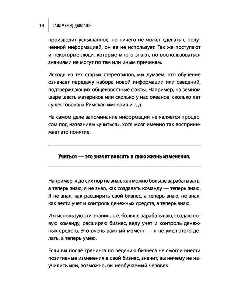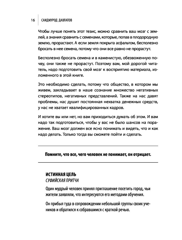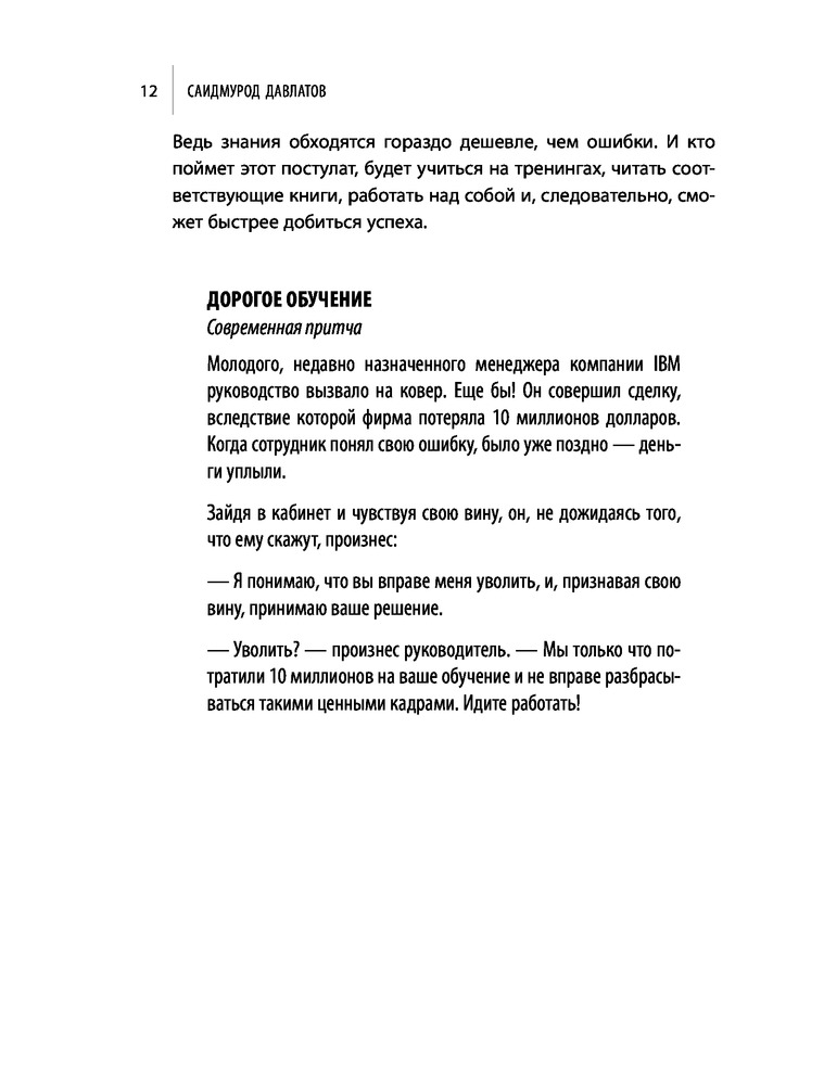 💳 Оплатить за товар можно при получении 🇰🇿 Есть бесплатная доставка по Казахстану 🎁 Копите бонусы с каждой покупки Серия: Восточная философия богатства Всего 10 шагов отделяют вас от богатой, изобильной жизни! В этой книге Саидмурод Давлатов представляет пошаговую методику открытия и развития успешного бизнеса. Все его слова подкреплены делом, а советы — проверены реальным опытом. За свою жизнь автор участвовал в 67 бизнесах, и многие из них сейчас процветают. Но часть не оправдала себя, о чем честно рассказывает Саидмурод Давлатов. Именно благодаря тому, что речь идет как о позитивном, так и негативном опыте, книга так ценна — ведь лучше учиться на чужих ошибках, чем совершать собственные. |