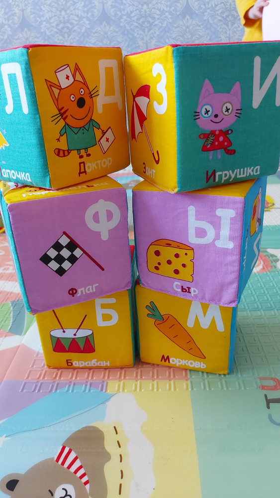 💳 Оплатить за товар можно при получении 🇰🇿 Есть бесплатная доставка по Казахстану от 1 дня 🎁 Копите бонусы с каждой покупки Серия: Три кота Набор из шести мягких кубиков размером 10 см — это универсальное учебное пособие для изучения русского алфавита, как детьми, так и взрослыми. Узнаваемые герои из мультфильма «Три кота» Коржик, Компот и Карамелька очень любознательны и дружелюбны. |
