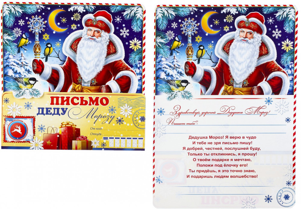 ФДА-card Письмо Деду МорозуВ данный момент этот товар отсутствует в продаже. Возможно, у нас найдется аналогичный или похожий товар здесь. Серия: Новый год Как Дед Мороз узнает о том, какой подарок вы мечтаете получить? Конечно, с помощью новогоднего письма! Его яркий оригинальный дизайн привлечёт внимание получателя и он, непременно, исполнит ваше желание в первую очередь! Настоящий ответ от Деда Мороза можно получить только в случае, если послание будет отправлено по всем требованиям волшебной почты. Письмо нужно отправлять заранее (в начале декабря), ведь у дедушки и его преданных помощников так много работы, что они могут просто не успеть ответить всем ребятишкам вовремя. |