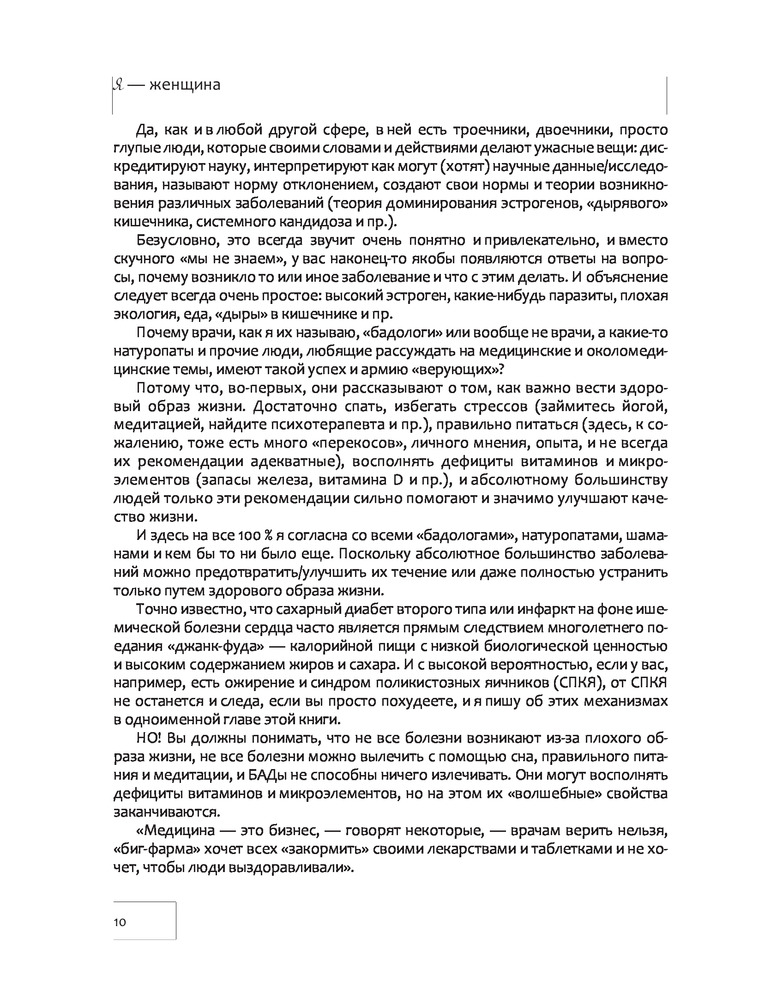 Книга супер, должна прочесть каждая девушка! Много полезной и нужной информации. Да, сложновата, но если читать медленно и вдумчиво, постепенно доходит суть) Книгу использую в качестве справочника, если есть какой то вопрос или проблема, то сразу бегу к этой книге. Грамотный врач!