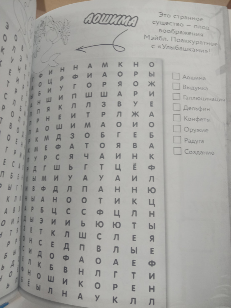 Замечательная книжка-головоломка. Разгадываем с сыном вместе. Весело. Объединяет. А если найдёт слово раньше меня (а это случается практически постоянно), то радости нет предела. Советую к приобретению. Спасибо FLIP