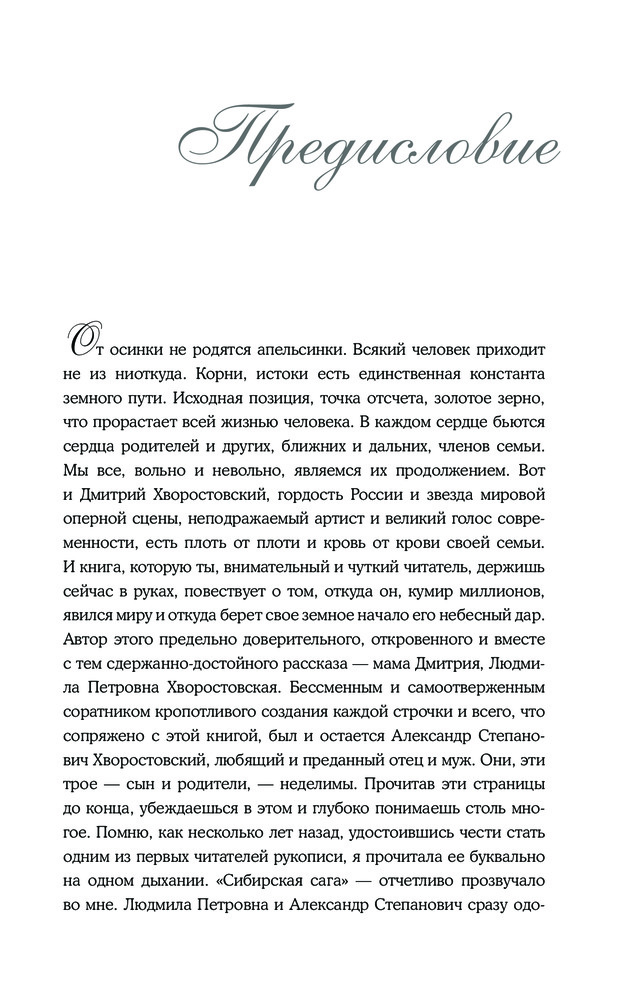 Серия: Мемуары семьи Хворостовских Сколько испытаний выпало на долю героев! Перемена мест — Германия, Поволжье, Сибирь, Киргизия и снова Сибирь; смешение кровей — немецких, русских, татарских, польских; масштабные исторические события — крах Российской империи, революция, Гражданская и две мировые войны... Перед нами — настоящая семейная сага, пестрая и яркая, протяженая во времени и пространстве. В первой части книги собраны рассказы старших родственниц Людмилы Петровны Хворостовской о жизни семьи Вербер и жизни семьи Тетериных до и после революции — жизни трудной, бурной, полной страстей. Основная часть повествования — воспоминания Людмилы Петровны. Военное детство, молодость, пришедшаяся на время «оттепели», знакомство с будущим мужем — Александром Хворостовским, замужество и рождение сына Дмитрия, детство и отрочество. Мы видим, какую роль играла музыка в жизни Людмилы и Александра и это повлияло на формирование жизненного пути Дмитрия Хворостовского. «Он поет так драматично и трепетно, потому что все наши страдания передались ему по наследству. В жизни ничего не происходит случайно — все предопределено и проигрывается как на пластинке». Мария Николаевна Вебер-Максимова, бабушка певца. |
