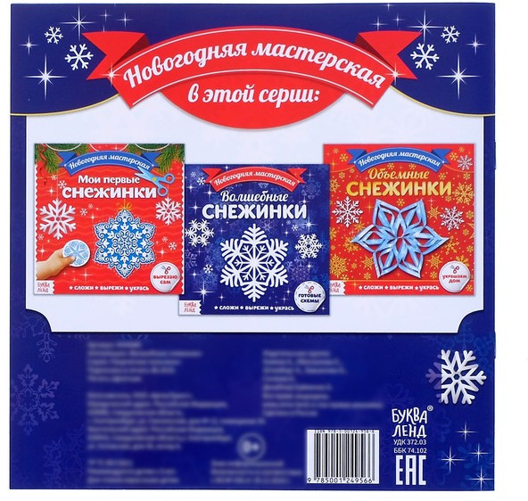 Серия: Новогодние книги Буква-Ленд С книгой аппликаций «Волшебные снежинки» малыш устроит дома новогоднюю мастерскую. Это несложное и увлекательное занятие развивает мелкую моторику рук, сенсорное восприятие, внимание, терпение и усидчивость малыша, подарит массу впечатлений не только юному творцу, но и взрослым. С помощью ножниц ребёнок вырежет праздничный декор по заготовленным схемам, а затем украсит комнату получившимися зимними кристалликами.  |