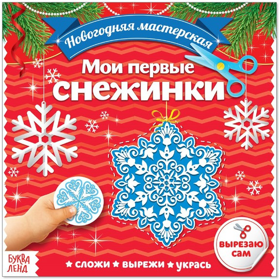 Аппликации «Мои первые снежинки»В данный момент этот товар отсутствует в продаже. Возможно, у нас найдется аналогичный или похожий товар здесь. Серия: Новогодние книги Буква-Ленд С книгой аппликаций «Мои первые снежинки» малыш устроит дома новогоднюю мастерскую. Это несложное и увлекательное занятие развивает мелкую моторику рук, сенсорное восприятие, внимание, терпение и усидчивость малыша, подарит массу впечатлений не только юному творцу, но и взрослым. С помощью ножниц ребёнок вырежет праздничный декор по заготовленным схемам, а затем украсит комнату получившимися зимними кристалликами. |