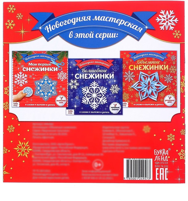 Серия: Новогодние книги Буква-Ленд С книгой аппликаций «Объёмные снежинки» малыш устроит дома новогоднюю мастерскую. Это несложное и увлекательное занятие развивает мелкую моторику рук, сенсорное восприятие, внимание, терпение и усидчивость малыша, подарит массу впечатлений не только юному творцу, но и взрослым. С помощью ножниц ребёнок вырежет праздничный декор по заготовленным схемам, а затем украсит комнату получившимися зимними кристалликами. |