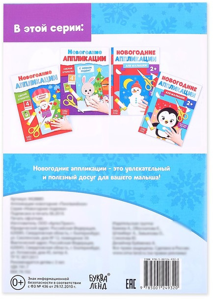 Аппликации новогодние «Пингвинёнок»В данный момент этот товар отсутствует в продаже. Возможно, у нас найдется аналогичный или похожий товар здесь. Серия: Новогодние книги Буква-Ленд Новогодние аппликации «Пингвинёнок» познакомят малыша с увлекательной техникой. Малыш без труда вырежет крупные цветные фигуры и сделает праздничный домик для зайки, украсит сани и расставит на них подарки.Это несложное и увлекательное занятие развивает мелкую моторику рук, сенсорное восприятие, внимание, терпение и усидчивость малыша, подарит массу впечатлений не только юному творцу, но и взрослым. |