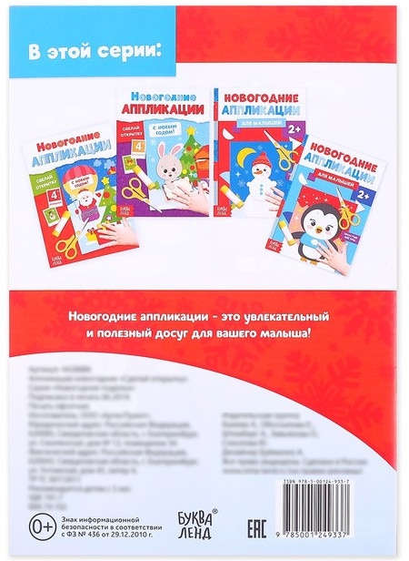 Аппликации новогодние «Сделай открытку»В данный момент этот товар отсутствует в продаже. Возможно, у нас найдется аналогичный или похожий товар здесь. Серия: Новогодние книги Буква-Ленд Новогодние аппликации «Сделай открытку» познакомят малыша с увлекательной техникой. Малыш без труда вырежет крупные цветные фигуры, напишет послания и порадует близких яркой зимней карточкой. Это несложное и увлекательное занятие развивает мелкую моторику рук, сенсорное восприятие, внимание, терпение и усидчивость малыша, подарит массу впечатлений не только юному творцу, но и взрослым. |