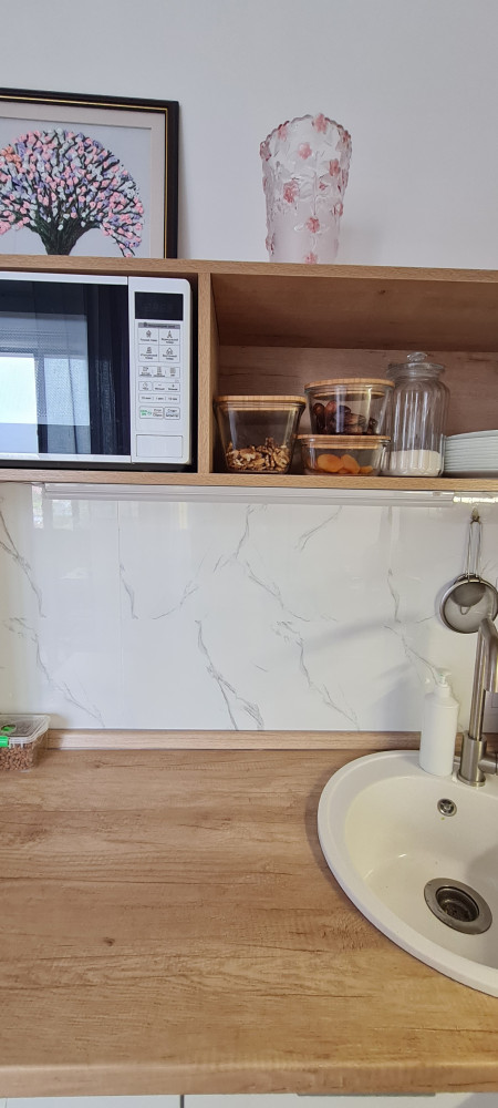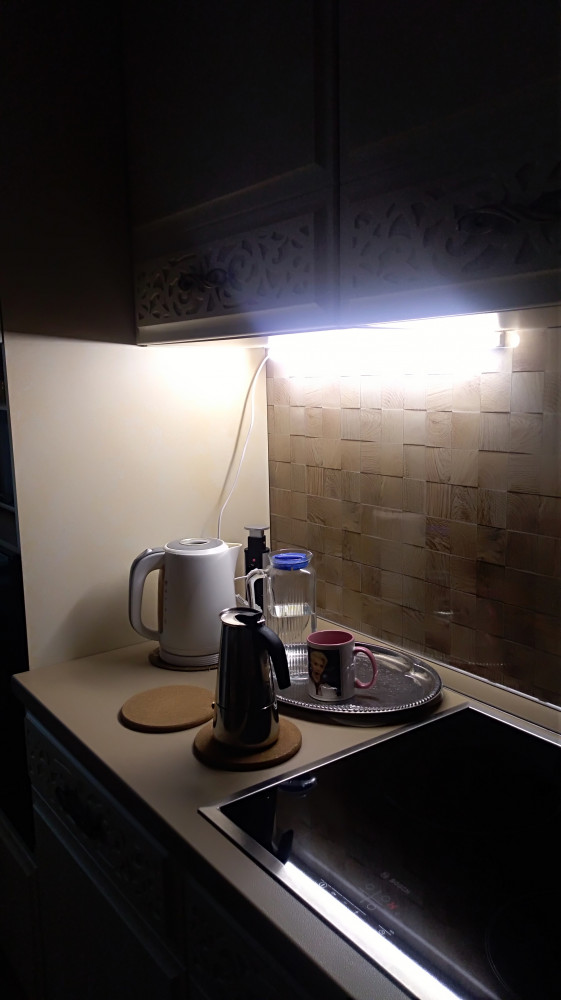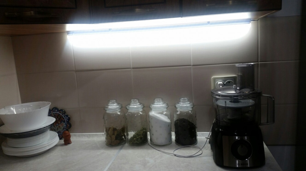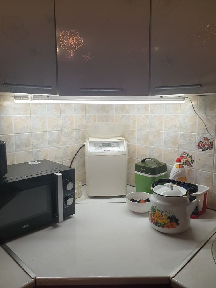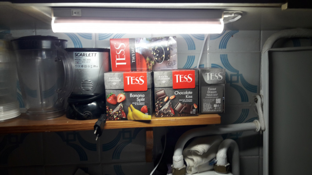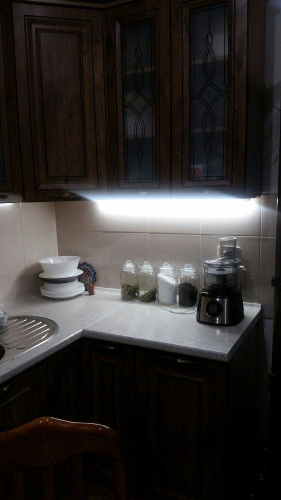 Брала самую большую. Установила над газовой плитой под навесным ящиком. Очень удобно особенно вечером. Спасибо производителям и команде Флип за работу.