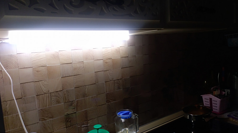 Отличная лампа. Брала 7 ватт , прекрасно светит. крепила на двусторонний скотч.