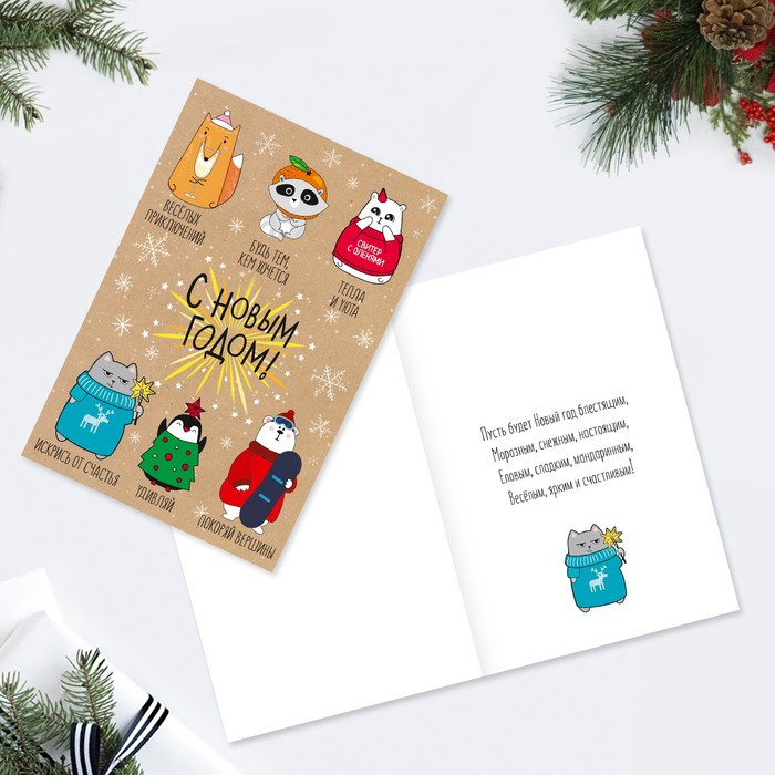 Дарите Счастье Открытка новогодняя «Зверюшки»-25% +1