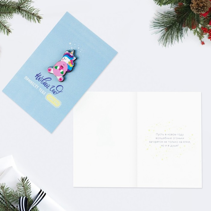 Дарите Счастье Открытка с деревянным элементом «Единорог»+6