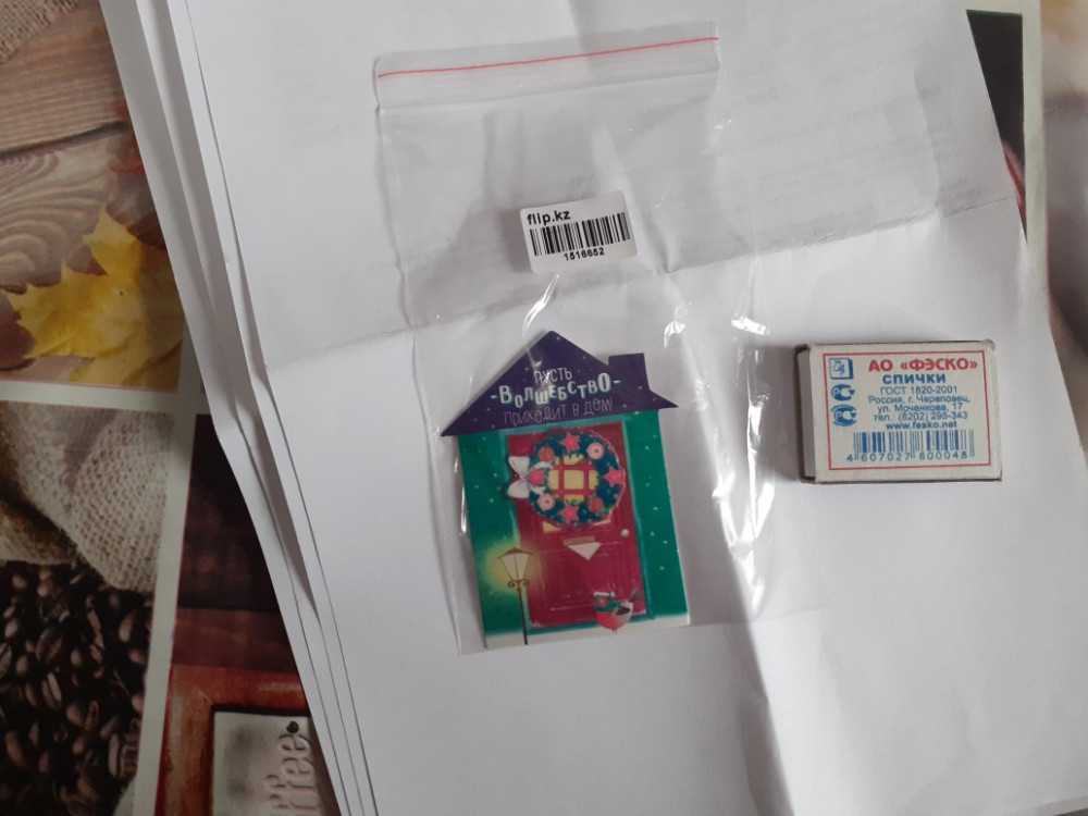 Открытка очень милая, но, к сожалению, задняя сторона испорчена наклейкой со штрих-кодом, от которой остаются липкие следы.