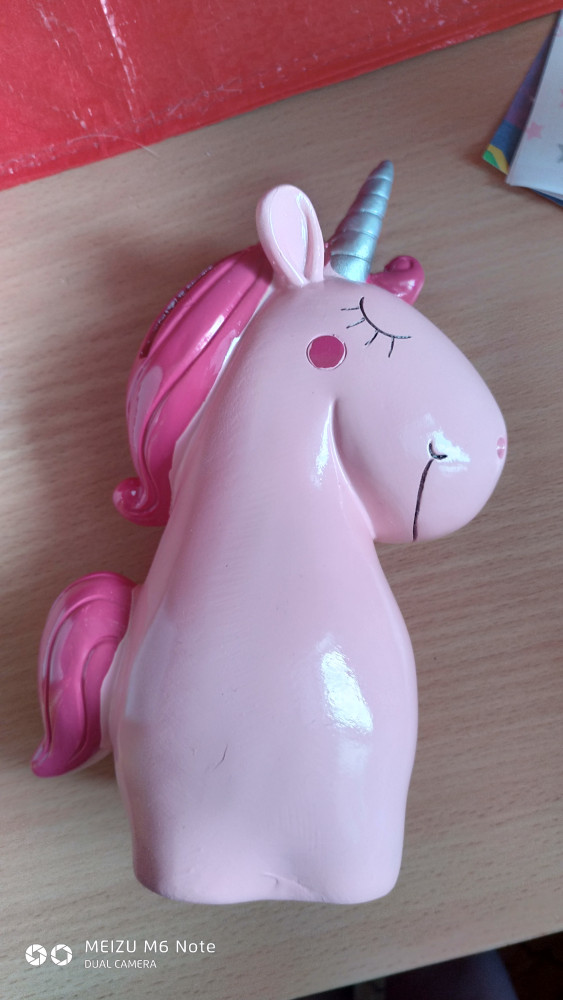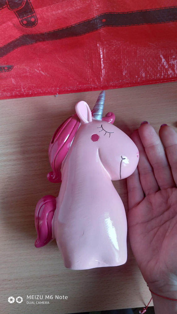 Копилка прям супер! Размером с ладонь. Снизу пробка, чтобы не разбивать эту прелесть, а доставать монетки как заполнится. Пришло все в целости, так как Flip.kz очень хорошо заботится об упаковке хрупкого товара. За что им отдельное спасибо! Заказом очень довольна!