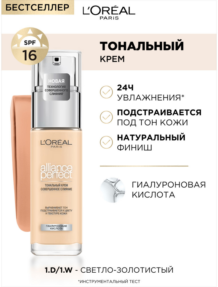 L'Oreal Paris Тональный крем «Alliance Perfect. Совершенное слияние» обогащенный гиалуроновой кислотой, оттенок 1D