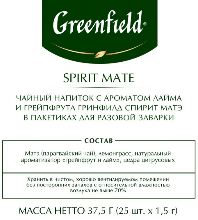 Greenfield Чай «Spirit Mate»+9 ароматный насыщенный вкус цитрусовые нотки приятно холодным