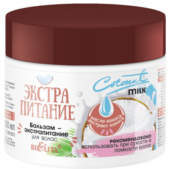 Bielita Бальзам для волос «Coconut Milk»-35% +12 мягкая текстура приятный запах