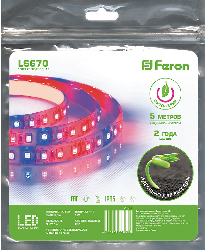 Feron Лента светодиодная для растенийВ данный момент этот товар отсутствует в продаже. Возможно, у нас найдется аналогичный или похожий товар здесь. Серия: Фито-серия Светодиодная лента LS670 предназначена для подсветки растений при недостатке естественного освещения: коротком световом дне, либо при проращивании рассады в помещениях. Уникальное соотношение светодиодов 5 красного спектра и 1 синего спектра способствует развитию корневой системы растений и вегетативному росту. Поэтому светодиодную ленту LS670 рекомендовано использовать для ускорения |