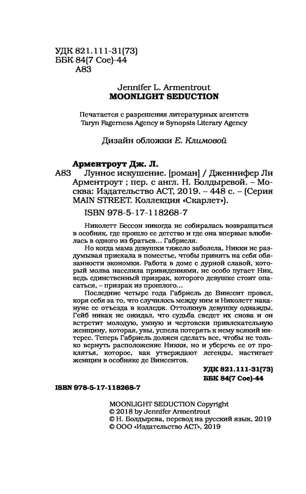 💳 Оплатить за товар можно при получении 🇰🇿 Есть бесплатная доставка по Казахстану 🎁 Копите бонусы с каждой покупки Серия: Main Street Николетт Бессон никогда не собиралась возвращаться в особняк, где прошло ее детство и где она впервые влюбилась в одного из братьев... Габриеля. Но когда мама девушки тяжело заболела, Никки не раздумывая приехала в поместье, чтобы принять на себя обязанности экономки. Работа в доме с дурной славой, который молва населила привидениями, не особо пугает Ник, ведь единственный призрак, которого девушке стоит опасаться, — призрак из прошлого... Последние четыре года Габриель де Винсент провел, коря себя за то, что случилось между ним и Николетт накануне ее отъезда в колледж. Оттолкнув девушку однажды, Гейб никак не ожидал, что судьба сведет их снова и он встретит молодую, умную и чертовски привлекательную женщину, которая, увы, успела потерять к нему всякий интерес. Теперь Габриель должен сделать все, чтобы не только вернуть расположение Никки, но и уберечь ее от проклятья, которое, как утверждают легенды, настигает женщин в особняке де Винсентов. |
