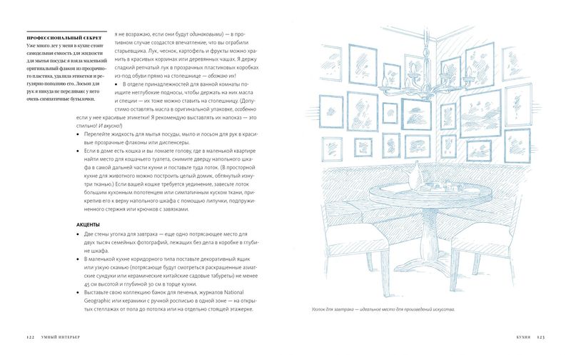 Книга предполагает интерьер в американском стиле, с огромными жилыми площадями, возможно будет полезна при обустройстве дома, не квартиры. Фотографий нет, только однотонные скетчи, причем они иллюстрируют книгу не полностью, приходится часто включать фантазию. Для себя взяла с десяток интерьерных советов, не больше, покупки целой книги они точно не стоили.