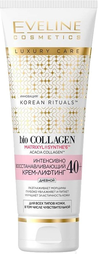 Eveline Cosmetics Крем-лифтинг для лица интенсивно восстанавливающий дневнойВ данный момент этот товар отсутствует в продаже. Возможно, у нас найдется аналогичный или похожий товар здесь. Серия: Luxury Care Крем на основе растительного коллагена повышает эластичность и упругость кожи, увлажняет и подтягивает кожу лица. Подходит для всех типов кожи, в том числе чувствительной. |