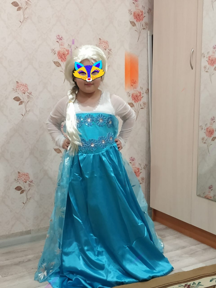 Платье красивое, нам понравилось, взяла на размер чуть больше, чтобы носить втечении года на различные мероприятия. Снимаю одну звезду, по причине парика, так как он оказался маловат и жиденький, а так же видны швы.