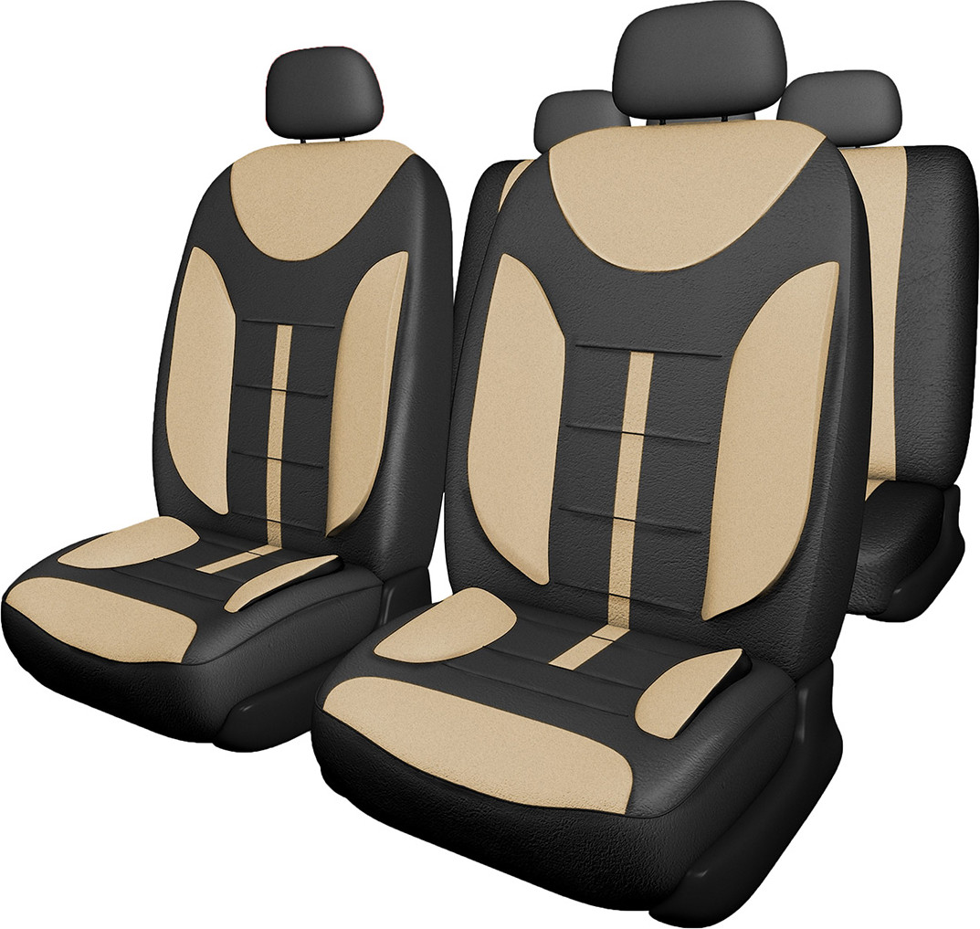 Комплект автомобильных чехлов из высокотехнологичных материалов в три слоя: полиэстер, поролон и завершающий клейкий слой, благодаря которому поролон не сыпется и сохраняет свою форму. Многослойная структура изделия и спинка из полиэстера позволяют максимально точно повторять контур сидений, делая чехлы универсальными. Разделение чехла на 2 части, спинку и сиденье, позволяет быстро и удобно одеть чехлы. Крепятся при помощи пластиковых крючков и резинок.