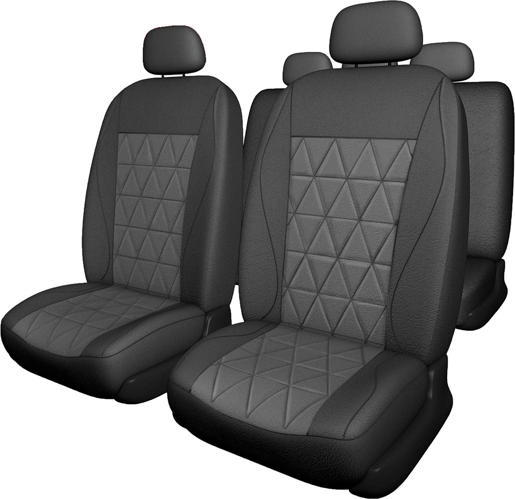 Комплект автомобильных чехлов из высокотехнологичных материалов в три слоя: экокожа, поролон и завершающий клейкий слой, благодаря которому поролон не сыпется и сохраняет свою форму. Многослойная структура изделия и спинка из полиэстера позволяют максимально точно повторять контур сидений, делая чехлы универсальными. Разделение чехла на 2 части, спинку и сиденье, позволяет быстро и удобно одеть чехлы. Крепятся при помощи пластиковых крючков и резинок.