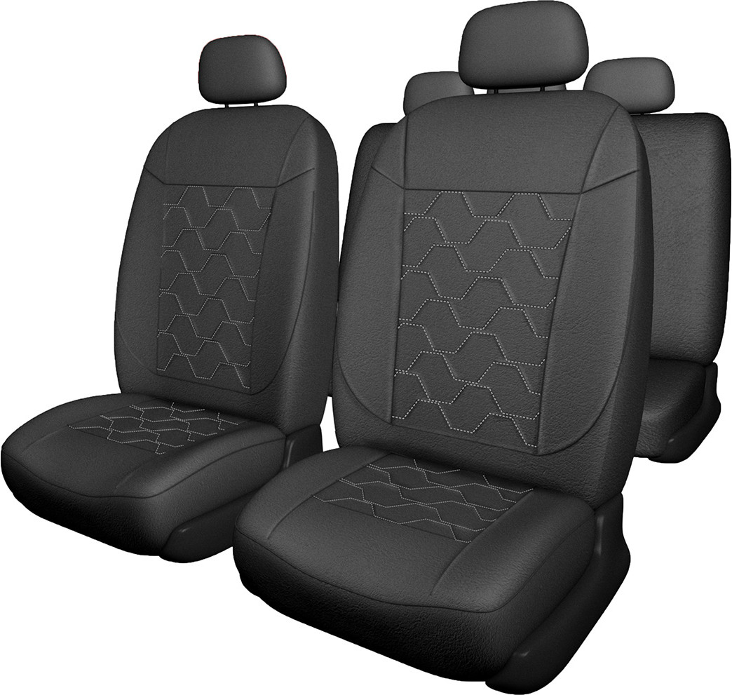 Комплект автомобильных чехлов из высокотехнологичных материалов в три слоя: экокожа, поролон и завершающий клейкий слой, благодаря которому поролон не сыпется и сохраняет свою форму. Многослойная структура изделия и спинка из полиэстера позволяют максимально точно повторять контур сидений, делая чехлы универсальными. Разделение чехла на 2 части, спинку и сиденье, позволяет быстро и удобно одеть чехлы. Крепятся при помощи пластиковых крючков и резинок.