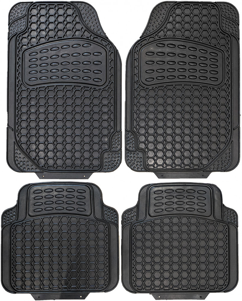 Это незаменимый аксессуар в салоне автомобиля, когда необходимо защитить напольное покрытие от влаги, пыли и прочих загрязнений, независимо от времени года. Технология изготовления резинового материала позволяет использовать комплект ковриков даже при низких отрицательных температурах, при этом гибкость и устойчивость изделий будет держаться уверенно! Благодаря дизайну все накопленные мелкие частицы загрязнений и влаги будут надежно удерживаться в коврике, а с помощью высоких бортиков они останутся внутри. Комплект ковриков произведен для универсального применения, что позволит установить их как в импортные, так и в отечественные автомобили. Современный дизайн изделий в виде сотов придаст салону стильный внешний вид!