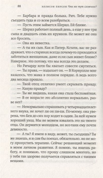 💳 Оплатить за товар можно при получении 🇰🇿 Есть бесплатная доставка по Казахстану от 1 дня 🎁 Копите бонусы с каждой покупки Второй роман о великолепной Кейт Редди, финансовом аналитике, заботливой матери, преданной жене, любящей дочери, сестре, невестке, подруге... Кейт знает ответы на все вопросы. Кроме, пожалуй, двух: как отыскать время для себя и где найти храбрость поступить так, как велит сердце, а не только рассудок — пусть даже самый здравый? Между событиями первой и второй книги прошло почти пятнадцать лет. Кейт стала спокойнее и мудрее, в чем-то мягче, в чем-то жестче. Дети подросли, и проблемы у них почти взрослые — правда, решать их приходится по-прежнему Кейт. А старшие родственники, напротив, впали в детство и требуют особого внимания. Немудрено, что Кейт чувствует себя начинкой сэндвича, причем размазанной тонким слоем. Вдобавок ей приходится снова искать работу, поскольку муж решил отныне жить в гармонии со своим внутренним далай-ламой и целых два года не будет зарабатывать ничего, так как переучивается на психолога. Но Кейт скоро пятьдесят, а в ее профессии этот возраст считается приговором. И она решает скостить себе несколько лет, чтобы вернуться в Сити и снова показать всем, на что способна. И, наконец, выбрать ту жизнь, о которой давно мечтала. |