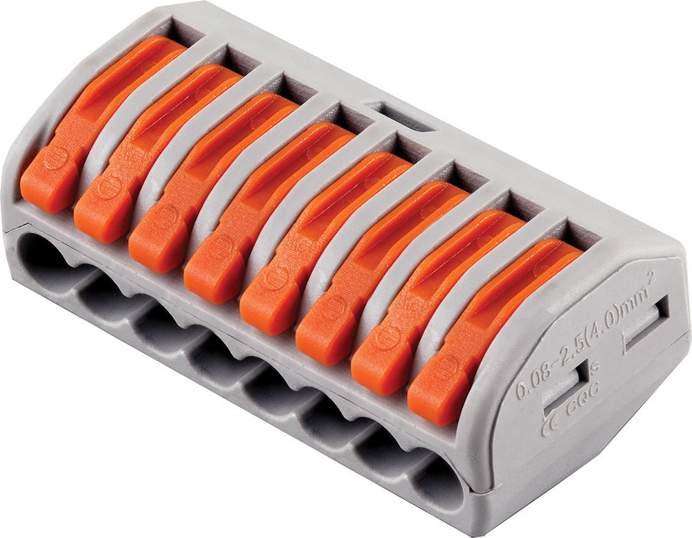 💳 Оплатить за товар можно при получении 🇰🇿 Есть бесплатная доставка по Казахстану от 1 дня 🎁 Копите бонусы с каждой покупки Клемма пружинная универсальная, 8-проводная 0,08 — 2,5/4 мм, 250В, 24 A, 32 A, без пасты. |