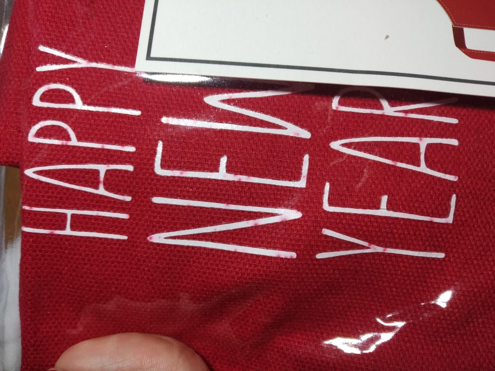 Фартучек этот - ДЕТСКИЙ . Очень уж маленький .Сшит он хорошо , ткань плотная . Есть изъян один , напечатанный принт (happy new year) оказался вовсе не белый , на нем от цвета красного фартучка проступили пятна прям на буквах .