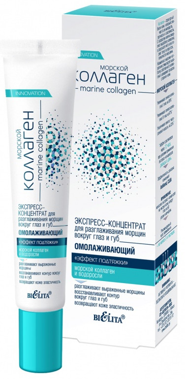 Серия: Морской коллаген Разработан для сглаживания возрастных изменений тонкой и нежной кожи вокруг глаз и губ. Стимулирует синтез коллагена, гиалуроновой кислоты, повышает тонус и упругость кожи, разглаживает морщины и обеспечивает выраженный лифтинг-эффект контура вокруг глаз и губ. |