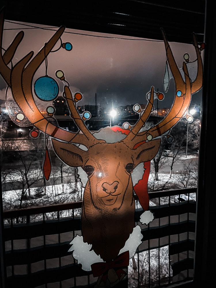 Олень полностью соответствует описанию) За свои почти два месяца жизни на окне - выглядит отлично Отклеить труда не составило, окно чистое, без клея) супер!
