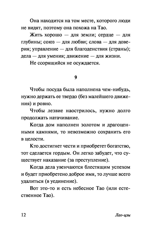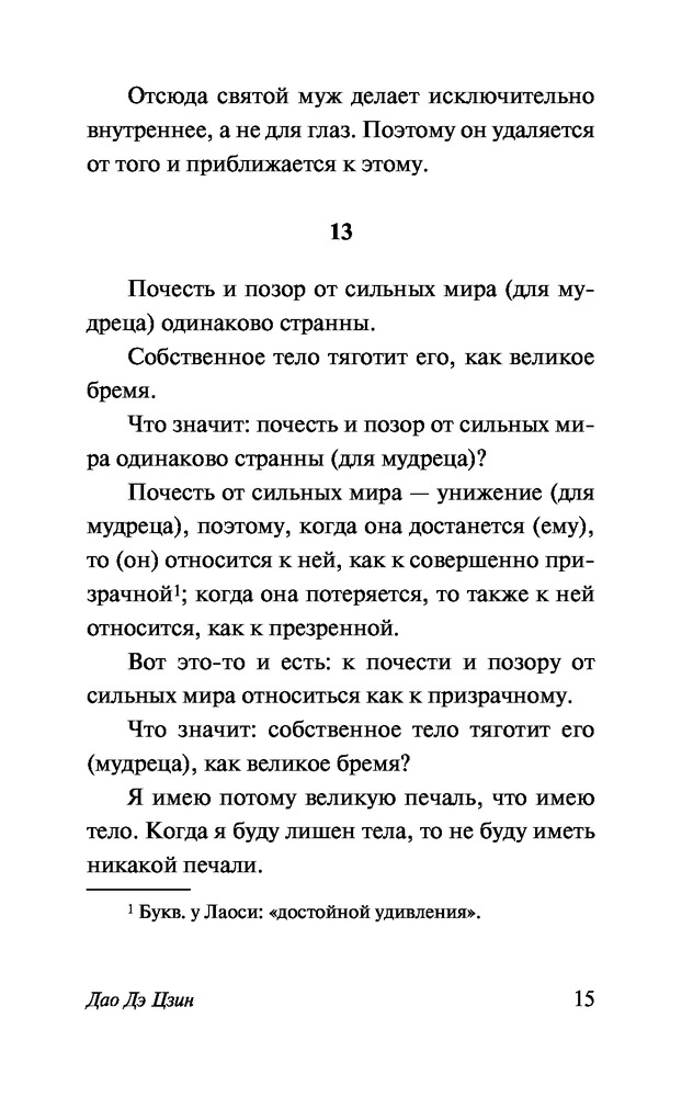 Перевод иногда не понятен , использует не те слова для передачи самой сути , суть передает но есть некая интерпретация слов . Моменты бывает что слова и их строение какие то странные не привычны . Вот отрывок из этой книги Почесть и позор от сильных мира (для мудреца) одинаково странны. Собственное тело тяготит его, как великое бремя. И сравни более известным издательством «Позор и милость — оба вызывают тревогу. > Великое несчастье — это наше тело. > Если бы не было тела, откуда бы взяться несчастьям?»