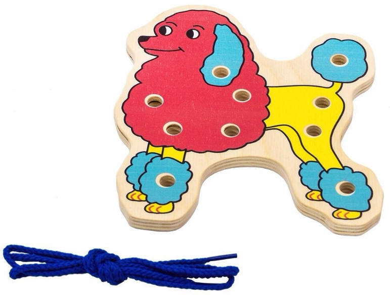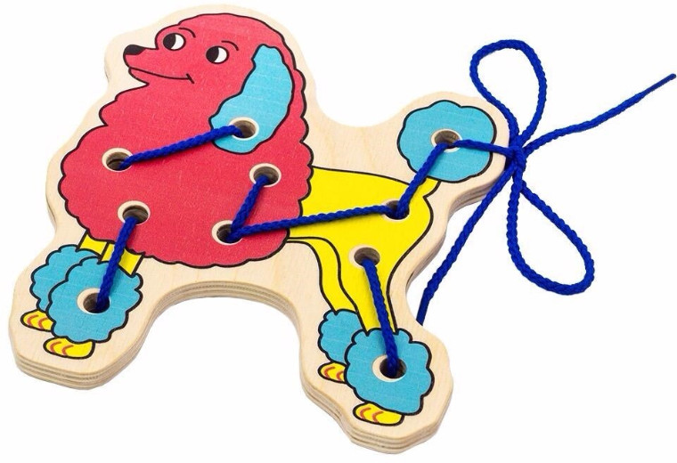 Alatoys Шнуровка «Пудель»качество из дерева В данный момент этот товар отсутствует в продаже. Возможно, у нас найдется аналогичный или похожий товар здесь. Шнуровка — это развивающая игра, состоящая из деревянной основы различной тематики и шнурка для продевания в отверстия основы. Шнуровка рассчитана для детей в возрасте от 1 года. Для самых маленьких шнуровка должна содержать крупные детали с большими отверстиями, чтобы малыш мог легко продеть шнурок в бусину или кубик, например. Для деток старше 3 лет предметы для нанизывания представляют собой буквы, цифры, тематические фигуры. |