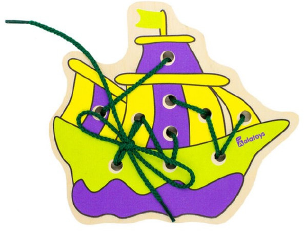 Alatoys Шнуровка «Фрегат»В данный момент этот товар отсутствует в продаже. Возможно, у нас найдется аналогичный или похожий товар здесь. Шнуровка — это развивающая игра, состоящая из деревянной основы различной тематики и шнурка для продевания в отверстия основы. Шнуровка рассчитана для детей в возрасте от 1 года. Для самых маленьких шнуровка должна содержать крупные детали с большими отверстиями, чтобы малыш мог легко продеть шнурок в бусину или кубик, например. Для деток старше 3 лет предметы для нанизывания представляют собой буквы, цифры, тематические фигуры. |