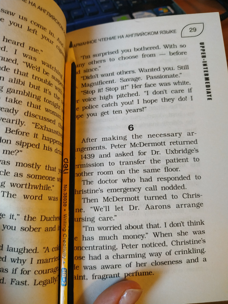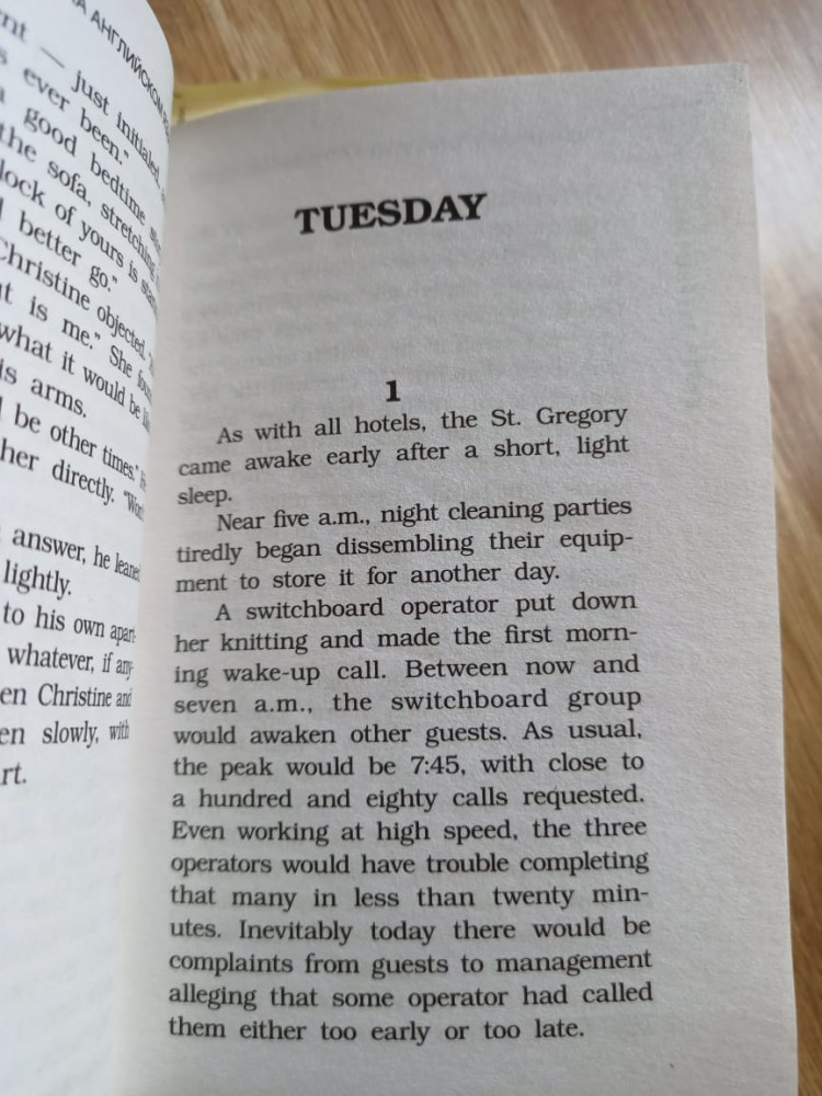 Люблю романы Артура Хейли. Жизненные. Читала на русском, теперь попробую с детьми на английском. Текст Слегка адаптирован. Думаю, что для среднего уровня будет доступен. Спасибо магазину. Обложка тонкая, как и было указано.