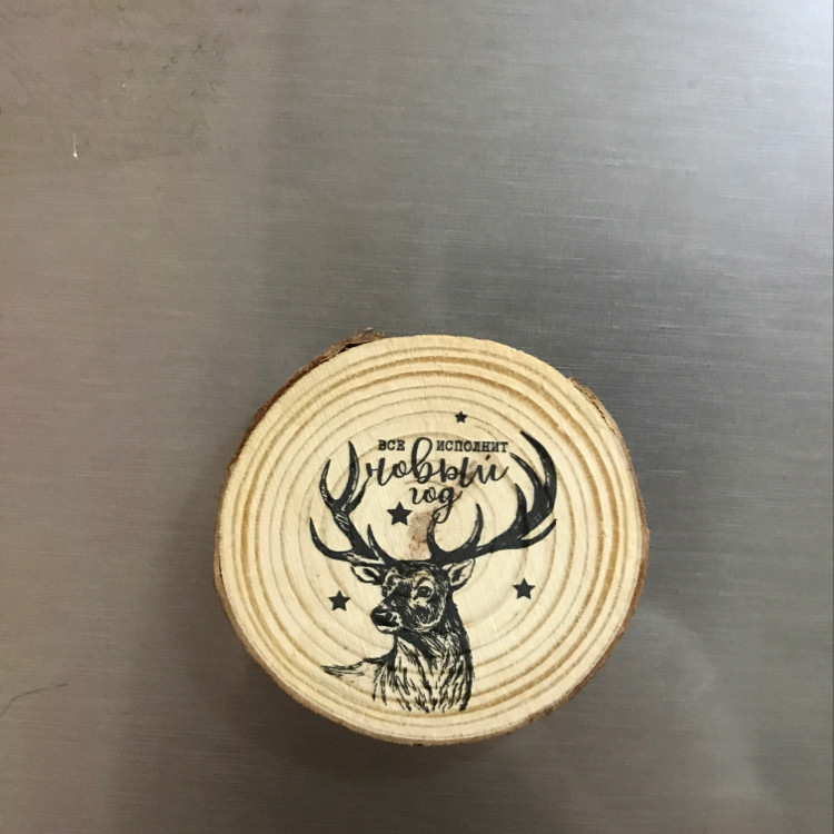Хороший магнитик: круглый срез и сзади эластичный круглый тонкий магнит чуть меньшего диаметра, чем сам срез дерева. Хорошо напечатан рисунок. Выглядит стильно.