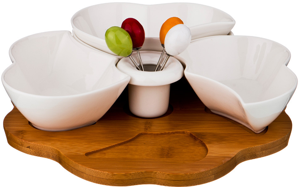 💳 Оплатить за товар можно при получении 🇰🇿 Есть бесплатная доставка по Казахстану 🎁 Копите бонусы с каждой покупки Менажница — модное и оригинальное изобретение, которое постепенно завоевало симпатию многих современных домохозяек. Эта оригинальная посуда идеально подходит для сервировки определенных блюд, например, салатов, заправок и вторых блюд, блюд из морепродуктов. Менажницы идеальны для больших застолий, так как они многофункциональны. Их секции можно использовать для одновременной подачи отдельных салатов и соусов. К тому же эти необычные тарелки смотрятся на столе стильно и нестандартно. |