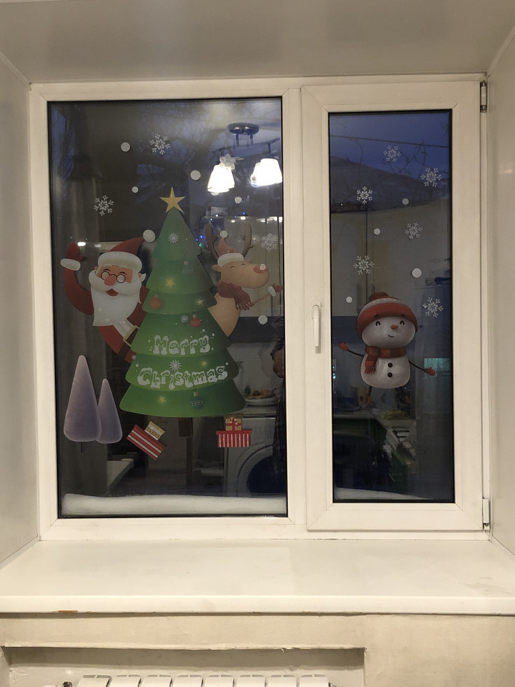 Спасибо Flip.kz за оперативную работу. Вчера вечером заказала и сегодня уже забрала с пункта выдачи. Наклейки очень яркие и красивые. Клеятся легко, предварительно протёрли окно влажной салфеткой. На фотографии стандартное окно в кирпичном доме.