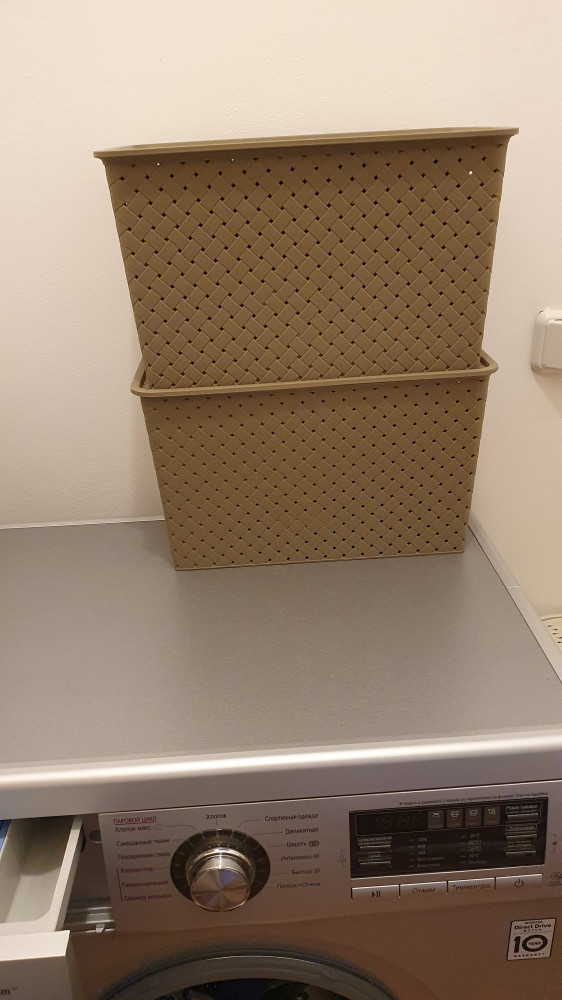Нууу такое себе. Крышка вообще была перекошенная - то ли в процессе доставки, то ли по жизни. Как ни выпрямляли - все равно уходила вкривь и не вставала ровно на корзину. Выглядит как-то тоже не фонтан. Безрадостно как-то и мрачновато.