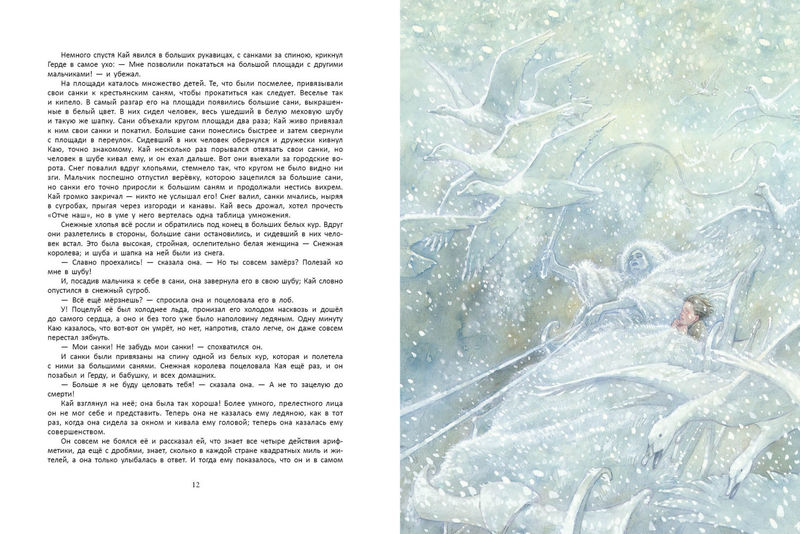 Книга "Снежная королева) великолепная! Очень красивая, много отличных реальных рисунков художника Патрика ДЖеймса Линча. Текст сказки полный, без сокращений и искажений. Шрифт чёткий, не бледный (часто теперь так печатают книги, что даже читать сложно). Бумага мелованная. Кстати, при заказе для меня имел значение отзыв о книге Надежды. Великолепная книга! Очень рекомендую!