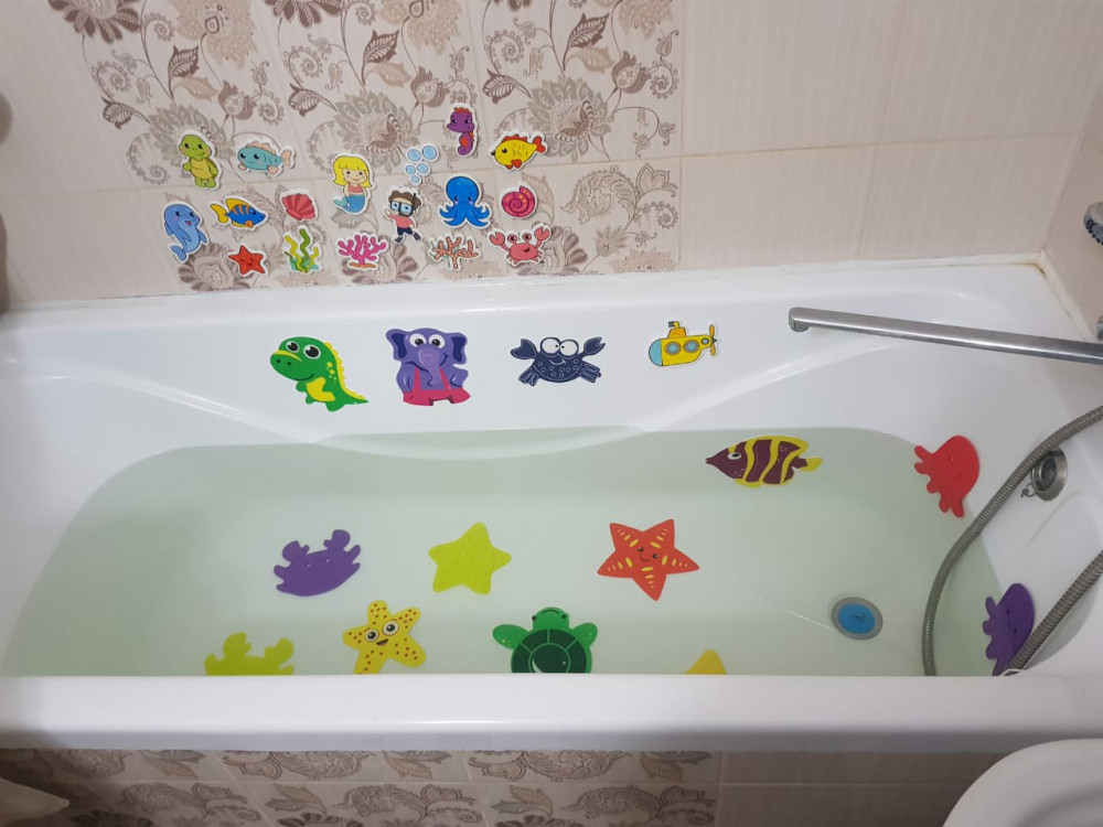 Отличные стикеры, достаточно большого размера, хорошо крепятся на акриловую ванну, легко сушатся, нам понравились👍🏻
