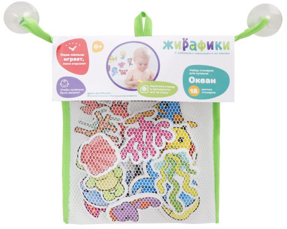 Жирафики Набор стикеров для купания «Океан»яркие цвета хорошая адгезия легко снимаются разные размеры В данный момент этот товар отсутствует в продаже. Возможно, у нас найдется аналогичный или похожий товар здесь. Набор стикеров для ванной «Океан» превратит купание малыша в интересное приключение, полное новых и ярких эмоций! Игровой комплект состоит из 18 мягких карточек с красочными изображениями милых зверюшек. Для того, чтобы прикрепить стикер на стену ванной, нужно предварительно намочить его водой. |