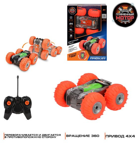 Пламенный мотор Машина перевертыш на радиоуправлении «Трюкач»В данный момент этот товар отсутствует в продаже. Возможно, у нас найдется аналогичный или похожий товар здесь. Радиоуправляемая машина-перевёртыш «Трюкач» осуществляет движение во все стороны: вперёд, назад, повороты вправо и влево, а также вращение на 360 градусов. Эта машинка выполняет виртуозные трюки! Во время игры она может двигаться на любой из двух сторон, переворачиваться и двигаться в противоположную сторону. |