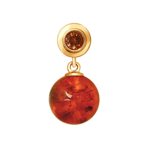 Подвеска из золочёного серебра с янтарём и фианитом | SOKOLOV
