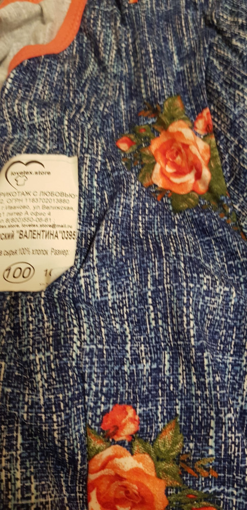 Халат хороший, отличная модель, сидит на фигуре красиво. Единственное - розы разбросаны по всей ткани халата, не так, как на картинке показано - строго по бокам. Ткань приятная.