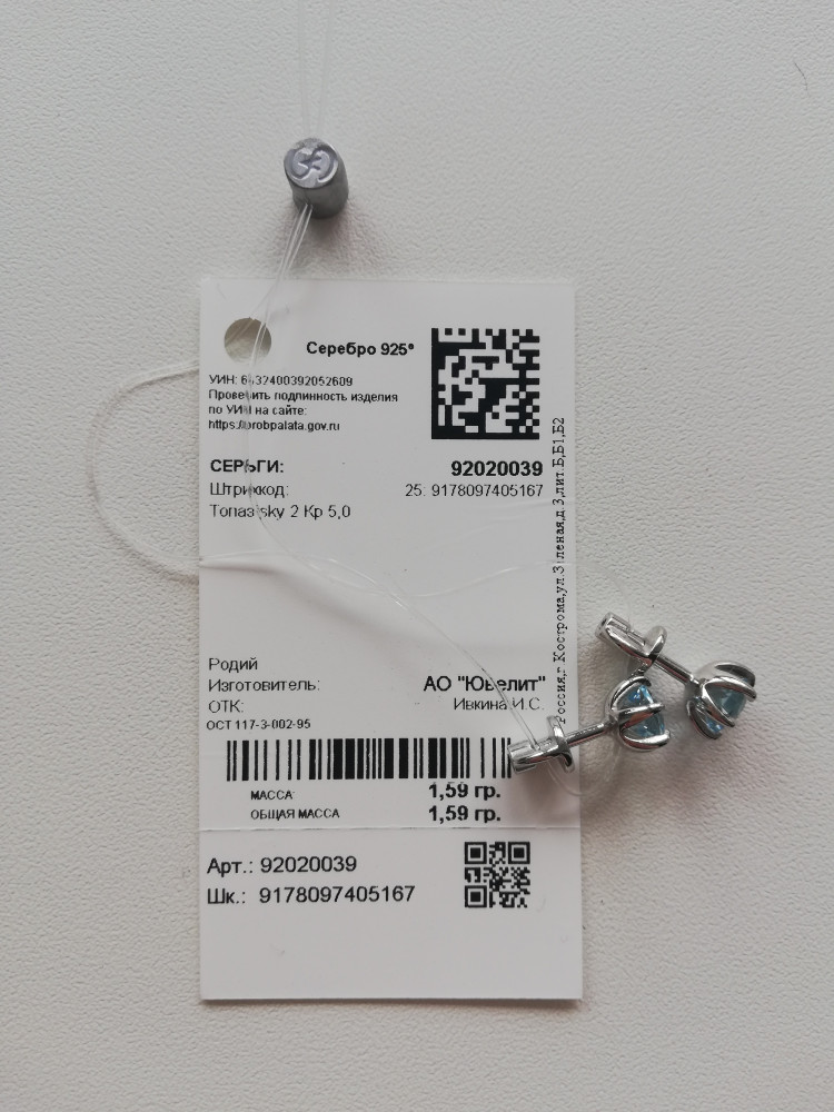 Отзывы «Серьги-пусеты из серебра с топазами»